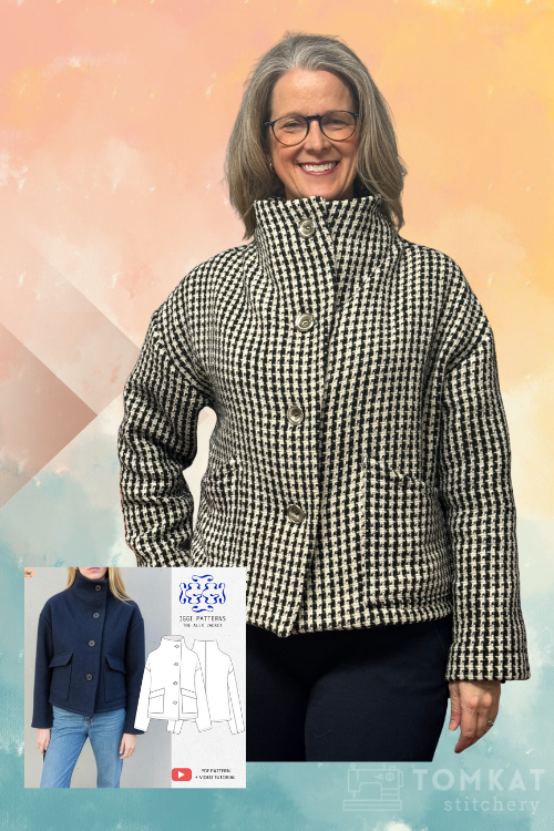 We spotted the Alex Jacket by Iggi Patterns on Instagram and fell in love with it's modern style and simple lines. This boxy silhouette with drop shoulders and a funnel neck was another perfect, simple pattern to really let the fabric shine. The pattern offers a slant pocket with optional pocket flaps to customize as you wish. And the instructions include a full video sew along so you can see each step of the way.