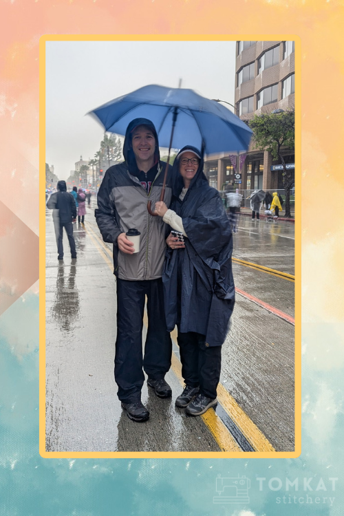 Southern California isn’t known for rain on New Year’s Day… but this year had other plans. Torrential rain meant ponchos, rain pants, hiking boots—and the rose shirt layered underneath for warmth.
