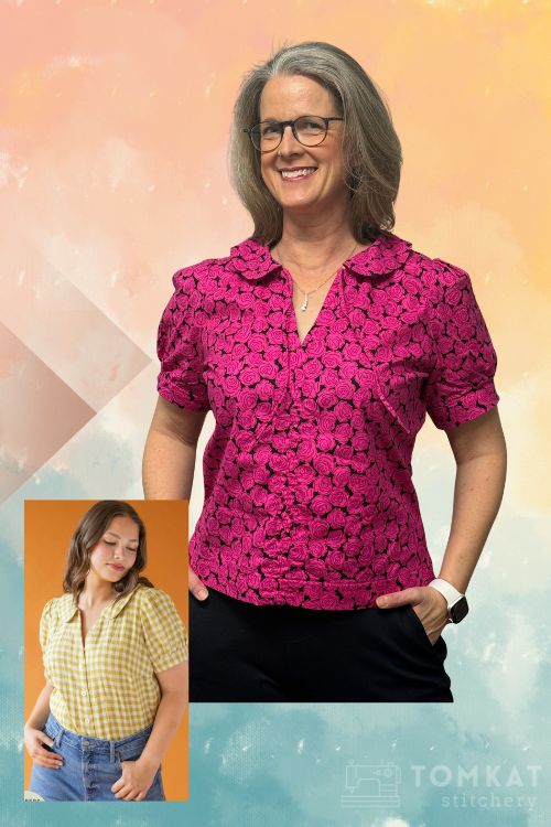 When Jenni spotted a rose‑print quilting cotton at her local fabric store, the plan clicked into place: a shirt that felt playful, bold, and parade‑ready.