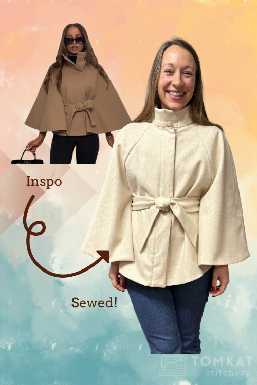 Marissa took her styling cues from an ASOS look featuring a wool cape paired with denim and faux-leather leggings. She can already see hers working beautifully as outerwear or as a true statement piece—styled with dark denim and boots or dressed up with tailored trousers. And thanks to Michigan’s long, chilly seasons, this cape will get plenty of wear from late fall straight through early spring. Best of all, it’s finally out of the stash and into her closet—dream make accomplished!