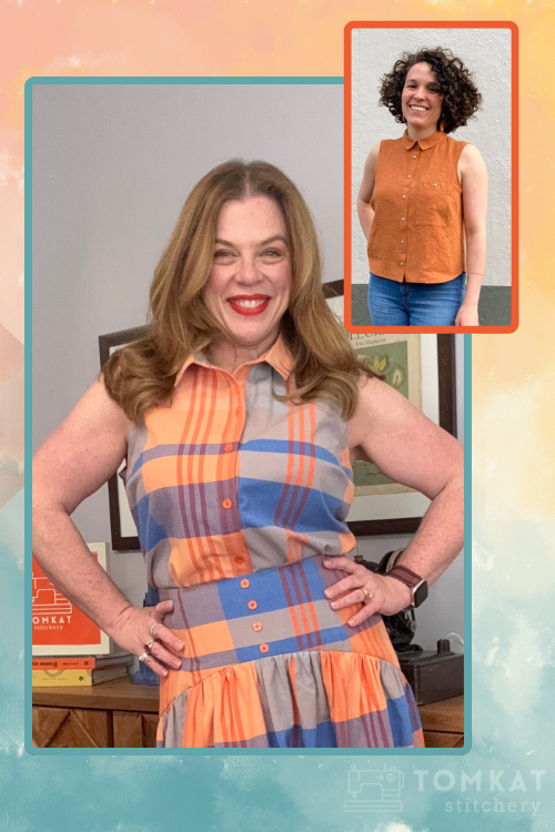 The Seamwork Willis Top* sewing pattern is a sleeveless button-front shirt with a collar and collar stand—classic structure, but easy and wearable. I sewed the shorter length, which gives it that slightly swingy shape through the waist and hips.