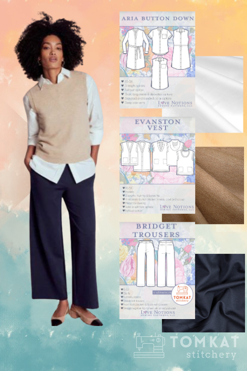 - Love Notions Evanston Vest* – Use the round neckline, longer length, and skip the pockets
